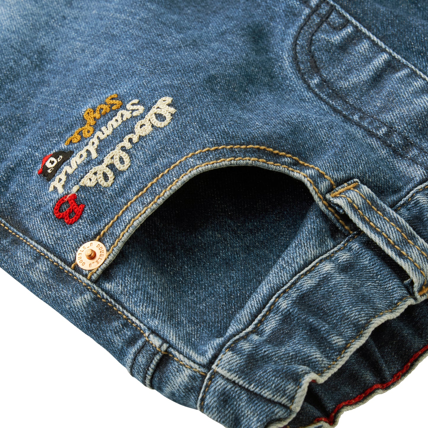 ・金茶ステッチやチェーン刺繍でアメカジ感溢れるデザイン