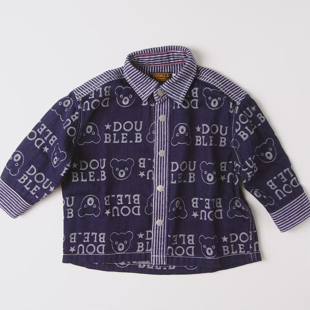 やわらかなジャカードデニム素材のシャツ(長袖)です。オリジナル総柄デザイン×デニム×ヒッコリーのダブルBらしいこだわりのシャツ。同柄シリーズで、ペアコーデが楽しめるアイテムです。