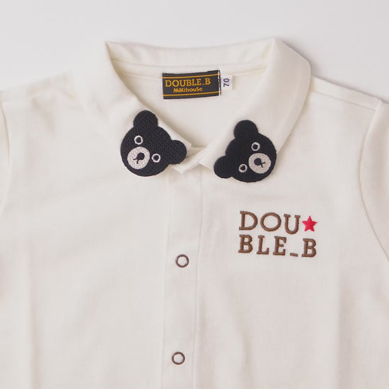 ダブルBには珍しい白色のブラウス(長袖)です。衿先に絶妙な大きさのクマが付いたブラウス。ロンパースやオーバーオールなどと、トータルコーデにおすすめなアイテムです。