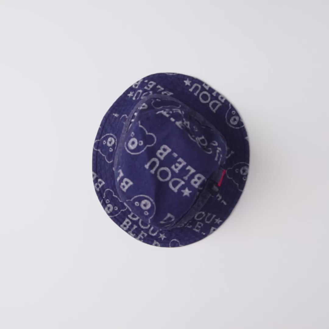 やわらかなジャカードデニム素材の帽子です。オリジナル総柄デザイン×デニム×ヒッコリーのダブルBらしいこだわりの帽子。旅行・遠足・公園・アウトドアなど、熱中症対策にも便利です。同柄のウエアで、ペアコーデも楽しめます。
