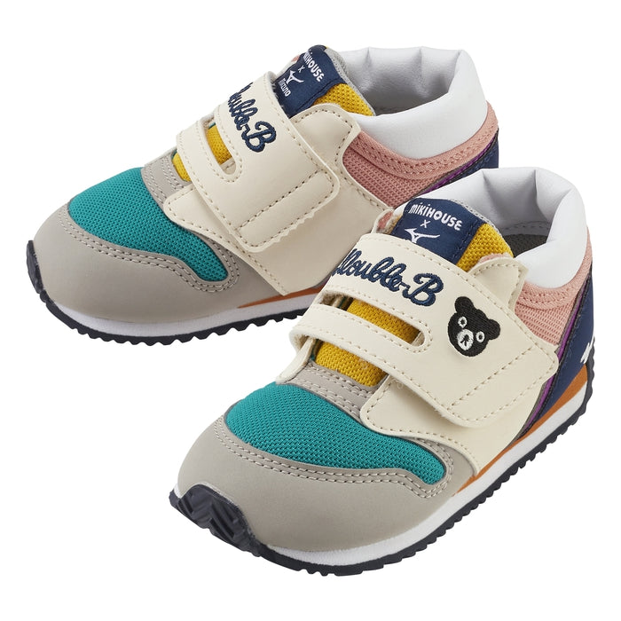 お子さまの足の成長を大切に考えた『ミキハウス×ミズノ』のコラボレーションシューズです。優れたデザインと機能性を兼備したおすすめセカンドベビーシューズです。主素材の合成皮革とメッシュには、再生ポリエステルをベースとした環境に配慮した素材を使用しています。