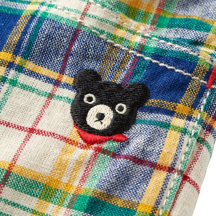 - (紺×グリーン)麻混先染格子、(ベージュ)サッカーストライプ