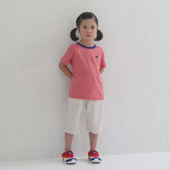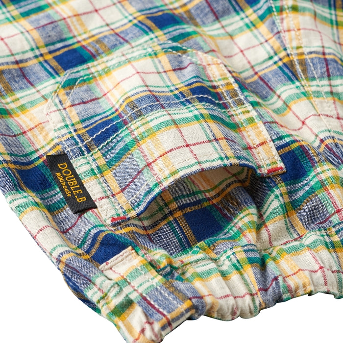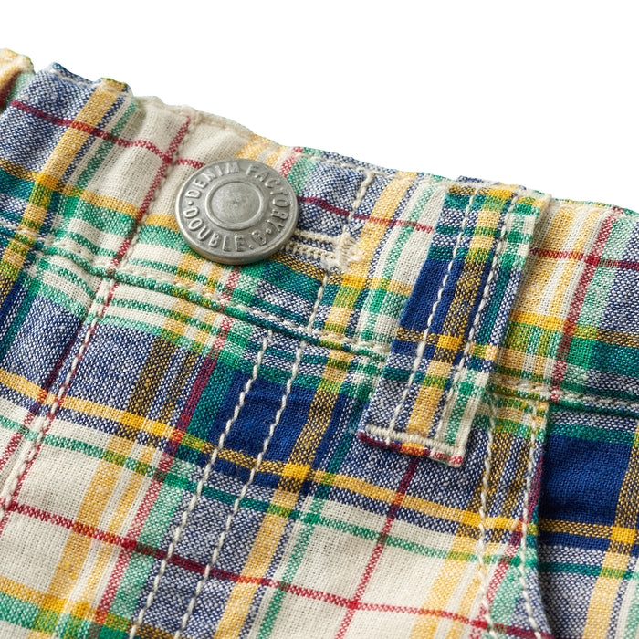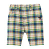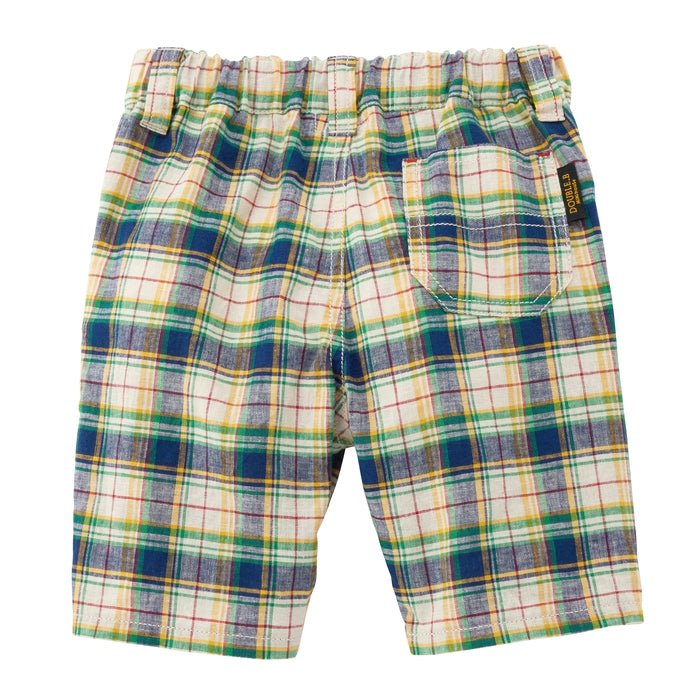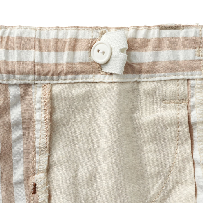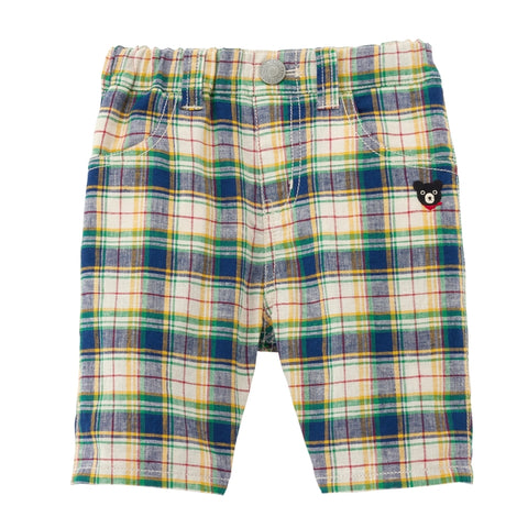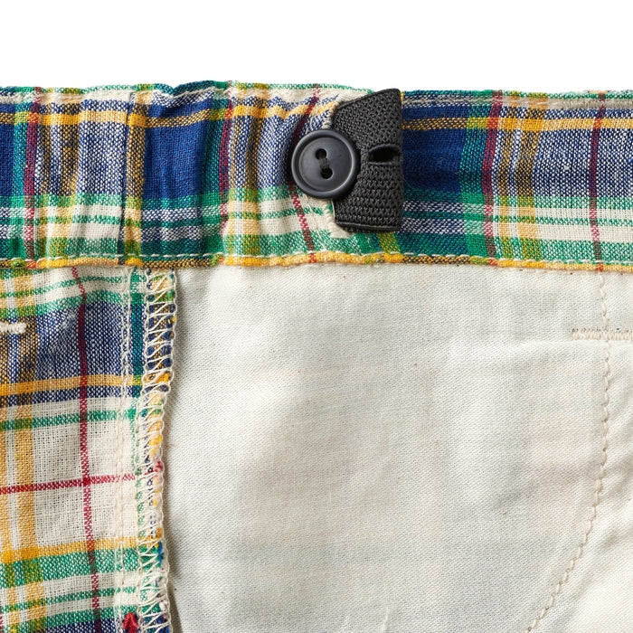 爽やかで涼しげな6分丈パンツです。爽やかな色調のチェック柄と、印象に残るベージュの太ストライプ。カジュアルの中にも上品さある印象。夏の涼しげなボトムスは、トップス次第で、色々なスタイルが楽しめるアイテムです。