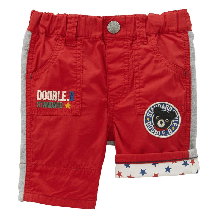左ポケット下に大きめのワッペンを付けたダブルBらしい存在感のある6分丈パンツです。活発なお子さまの動きやすさや、はき心地にこだわったデザイン。