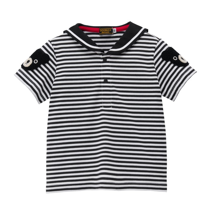 ロゴ刺繍が施されたセーラーカラーのブラウス(半袖)です。ロンパースやオーバーオールなどのコーディネートに映えるセーラーカラーブラウス。