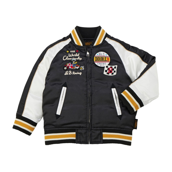 車、バイクが登場する『DBレーシング』シリーズのダウンジャンパーです。細かなモチーフなど、素材感や雰囲気にこだわったデザインの防寒ジャンパーです。同柄のボトムスとの遊び心が感じられるカッコいいコーディネートもおすすめ。