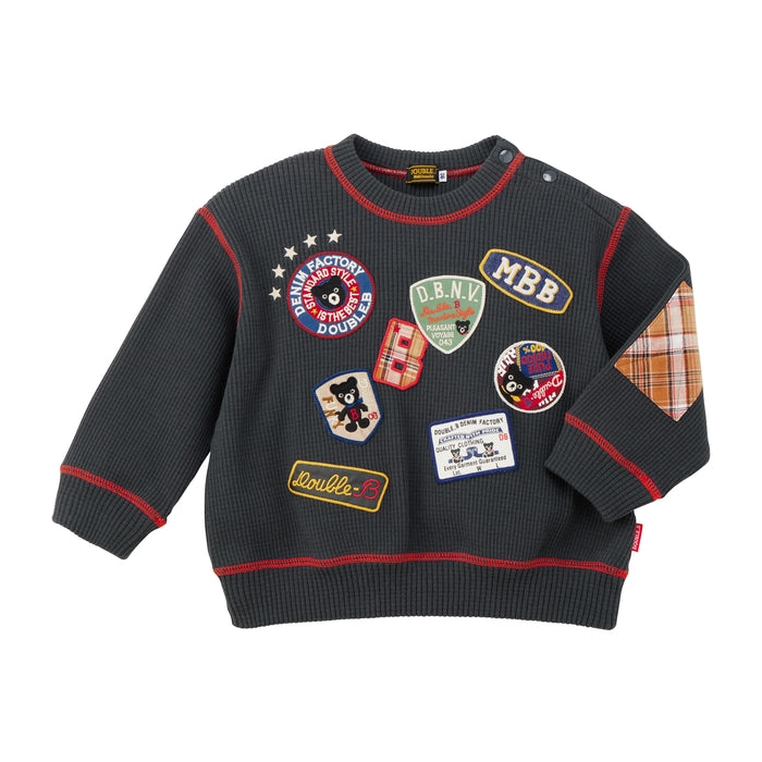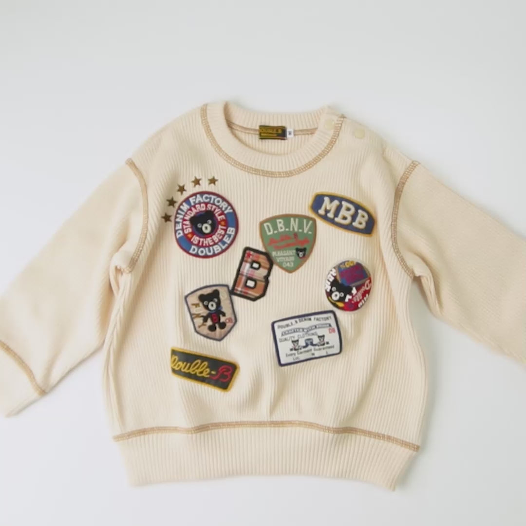 『THE!ダブルB』らしいワッペンが盛りたくさんのトレーナーです。フリースパンツやモーデュロイシリーズのボトムスとの、やわらかい雰囲気コーデがおすすめ。