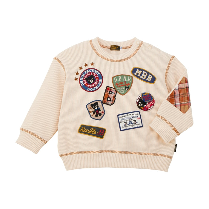 『THE!ダブルB』らしいワッペンが盛りたくさんのトレーナーです。フリースパンツやモーデュロイシリーズのボトムスとの、やわらかい雰囲気コーデがおすすめ。