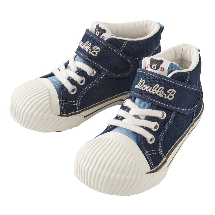 甲ベルトと、かかと部分に刺繍がついたキッズシューズです。デイリーからお出かけまで幅広く利用できるキッズアイテムです。