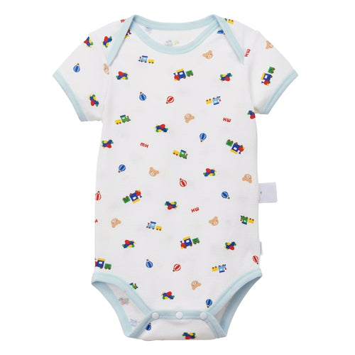 ・通年素材のフライスを使用。伸縮性に優れ赤ちゃんに着せやすく、汗もしっかり吸収