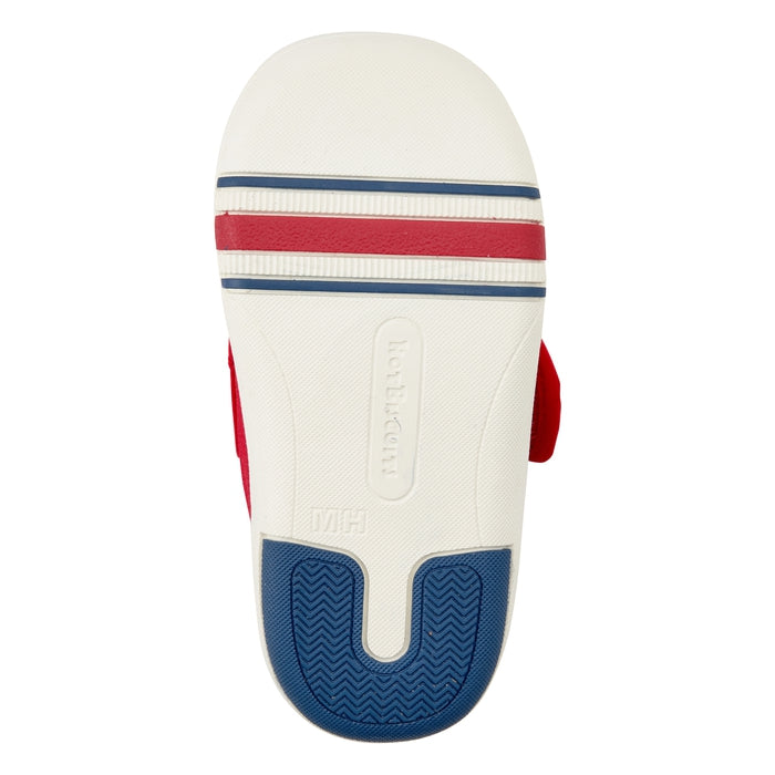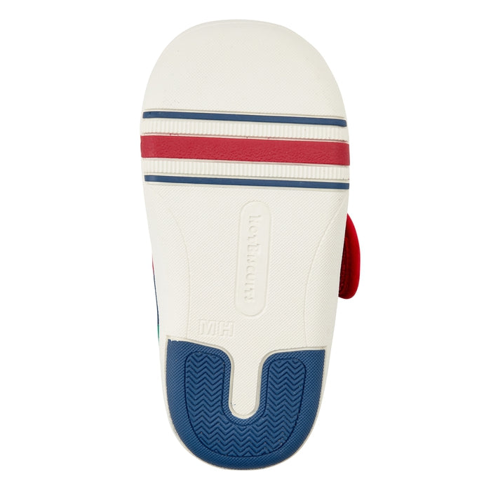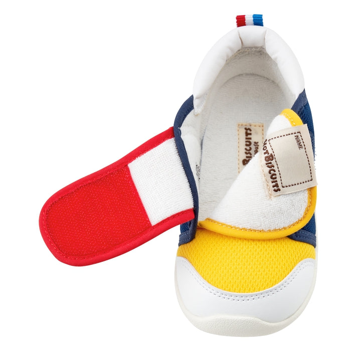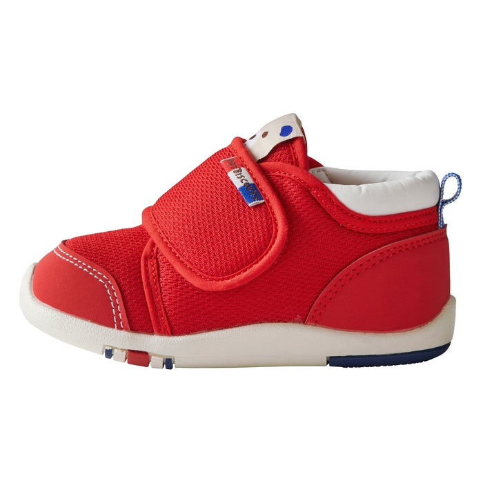 面ファスナーで調節できるので、甲高の赤ちゃんの足にもフィットします。