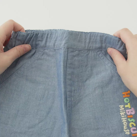 ミキハウス ホットビスケッツのパステルロゴの6分丈パンツです。