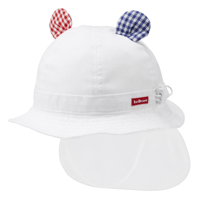 人気のくまみみ付きベビー帽子が、サイズ調整と日よけカバーが取り外し可能になり、より機能性をアップしてリニューアルしました。