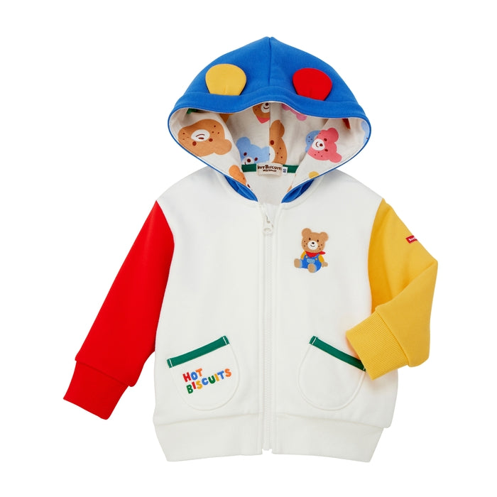 フードに付いたくまみみや裏地の総柄がアクセントに。
