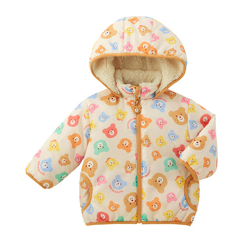 ミキハウス ホットビスケッツの総柄裏ボアフリースジャンパー。