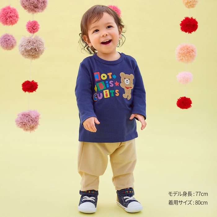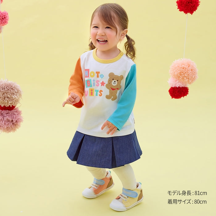 パステルカラーのカラフルなロゴとビーンズのワッペンがついたホットビスケッツらしいデザインの長袖Tシャツです。