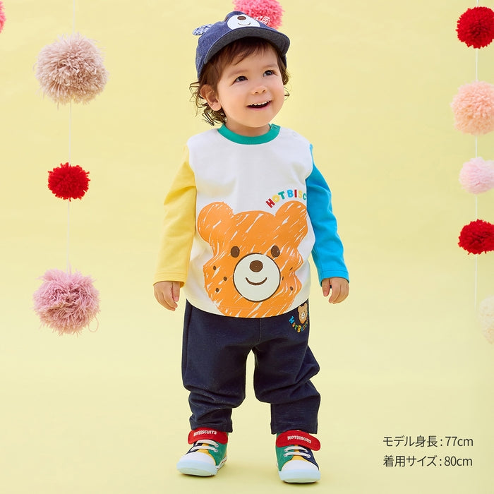 クレヨンタッチ風で描かれたビーンズの大きなお顔のデザインが特徴の長袖Tシャツです。