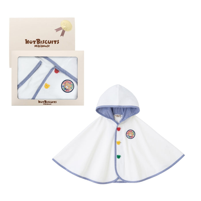 パイル素材のおでかけポンチョがセットになった、ミキハウス ホットビスケッツのベビーギフトセットです。