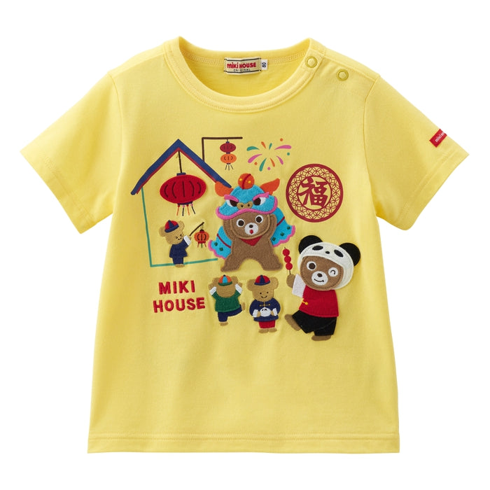 像熊猫一样的普奇(Pucchi)穿着中国为主题的T恤喜欢中国节!