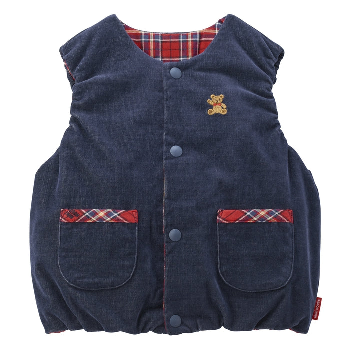 MIKI HOUSE这是一个可逆的背心,上面有熊刺绣。