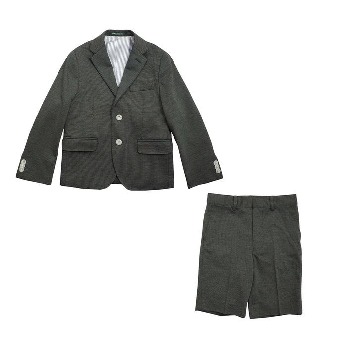 灰色西装,由略坚固的织物制成,结合了柔软度和优雅。