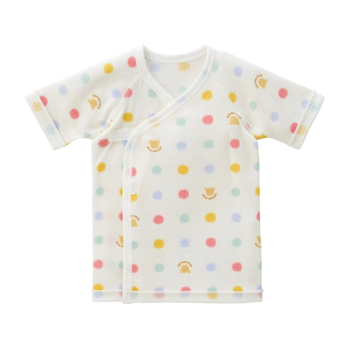这套短内衣由两层制成,由蓬松的针织纱布材料制成。它具有带有多点和块徽标的印刷图案。快照按钮类型新生儿内衣,使换衣服更容易。建议作为出生准备,作为出生庆祝活动或礼物。