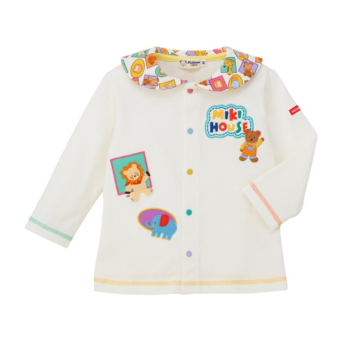 今期のクラシックベアーシリーズ目玉の「どうぶつアップリケ」柄をセーラー衿部分にあしらった長袖ブラウスです。