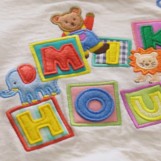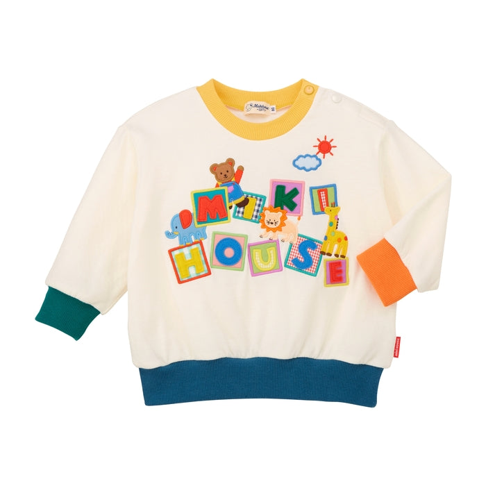 クラシックベアシリーズでおなじみのレトロなミキハウスロゴが中央にデザインされたトレーナーです。