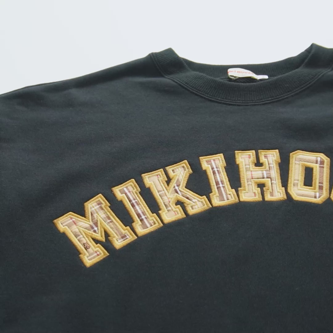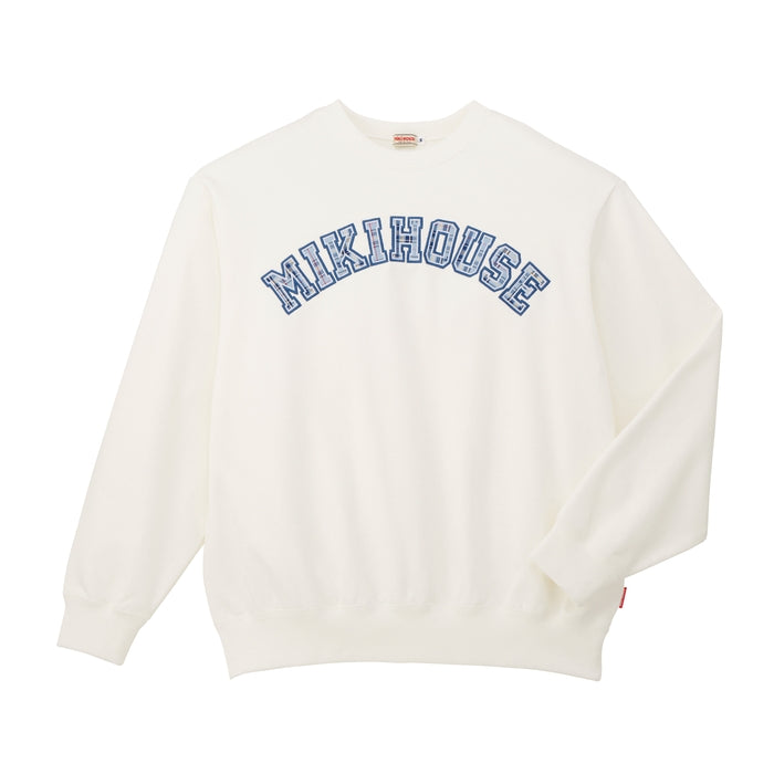 大学のスウェットを思わせるフォントにミキハウスチェックを合わせ、カジュアルなスウェットながらもおしゃれに着ていただけます。