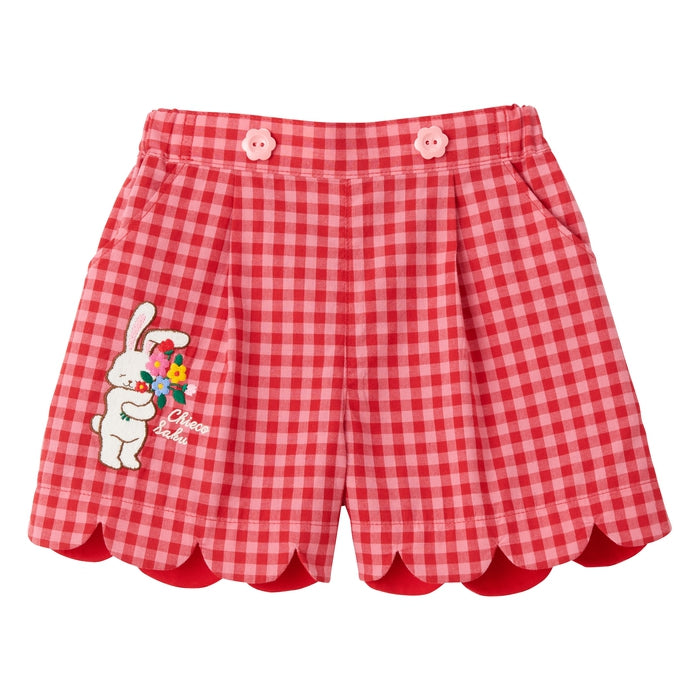 下摆的镂空剪裁像花瓣一样可爱的设计的剪裁裙。 柔软的宽的轮廓女孩子的短裤风的单品。CHIECO SAKU用格子上衣搭配,和鞋子、帽子等小东西搭配,也推荐可爱的套装风格。