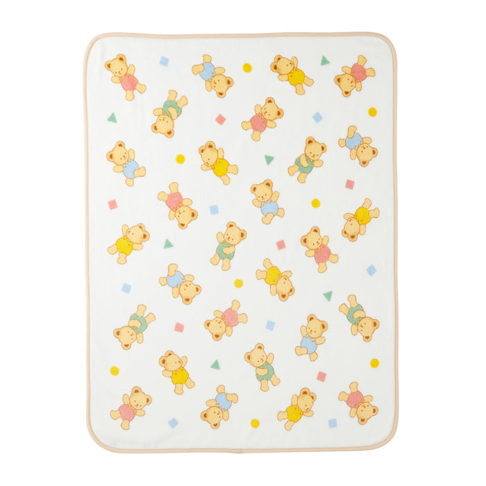 毛是长,两面起毛素材的棉毛毯。 人气可爱MIKI HOUSE熊花纹。 用温和的温暖来调节宝宝的体温吧。 推荐用于庆祝出生和送礼。厚度适中,双面起毛手感柔软,全年使用对婴儿皮肤温和的棉质材料