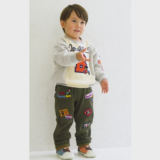 車、バイクが登場する『DBレーシング』シリーズの裏起毛素材の暖かなトレーナーです。あったかパンツなどのボトムスと暖かセットアップがおすすめ。