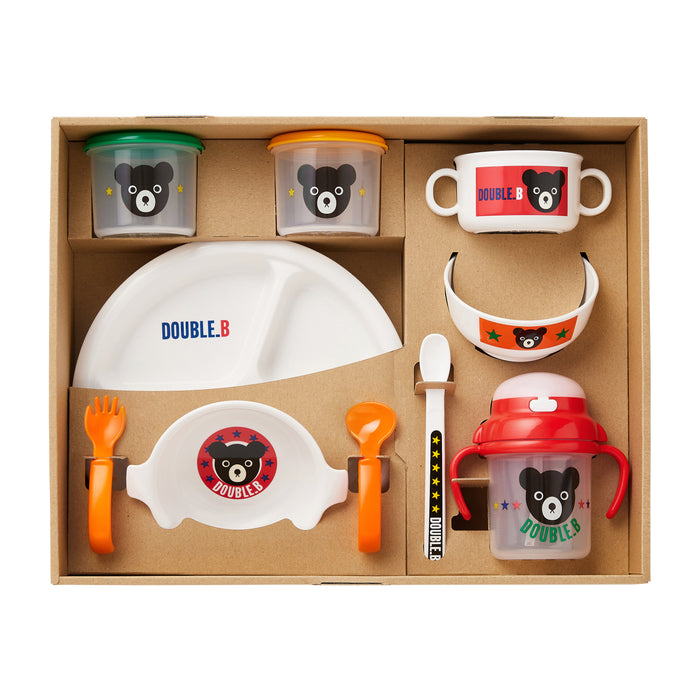 适用于初次断奶食品的餐具组套(餐具组套)。 以美国食客为原型设计的DOUBLE B像样的餐具套装。 工艺品风格的BOX等DOUBLE B个性也很讲究。 推荐用于庆祝出生和送礼。 从断奶食品的初期到自己能吃为止长时间可以使用。